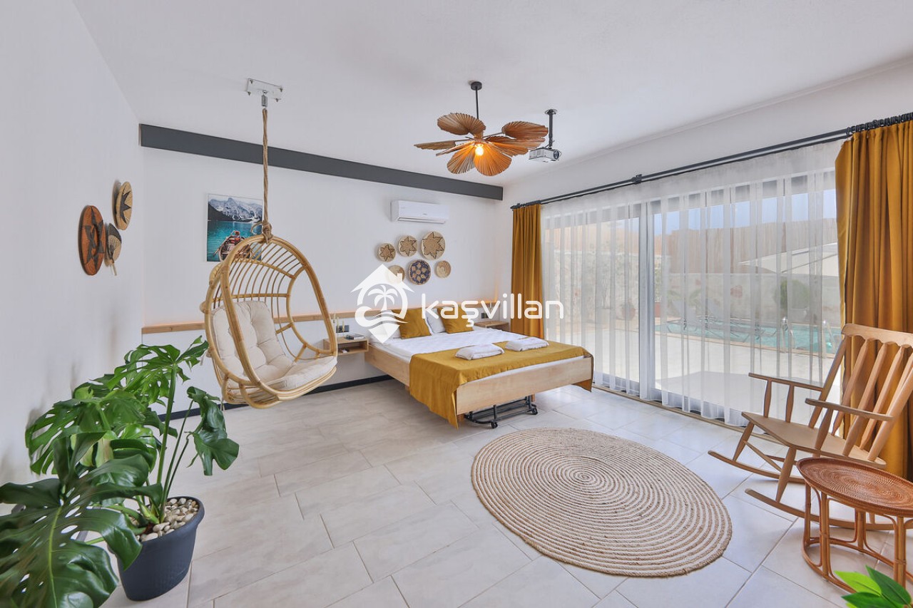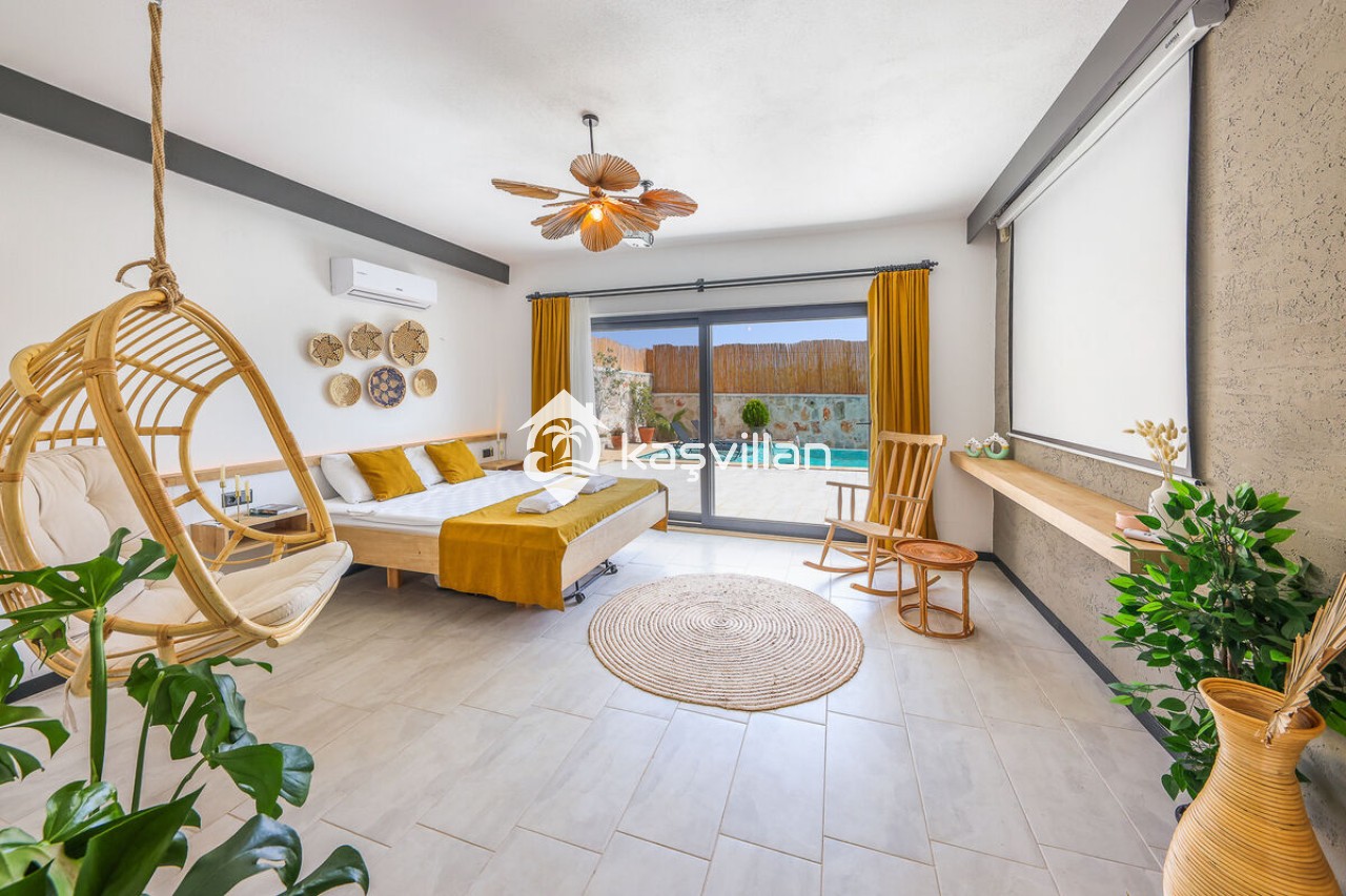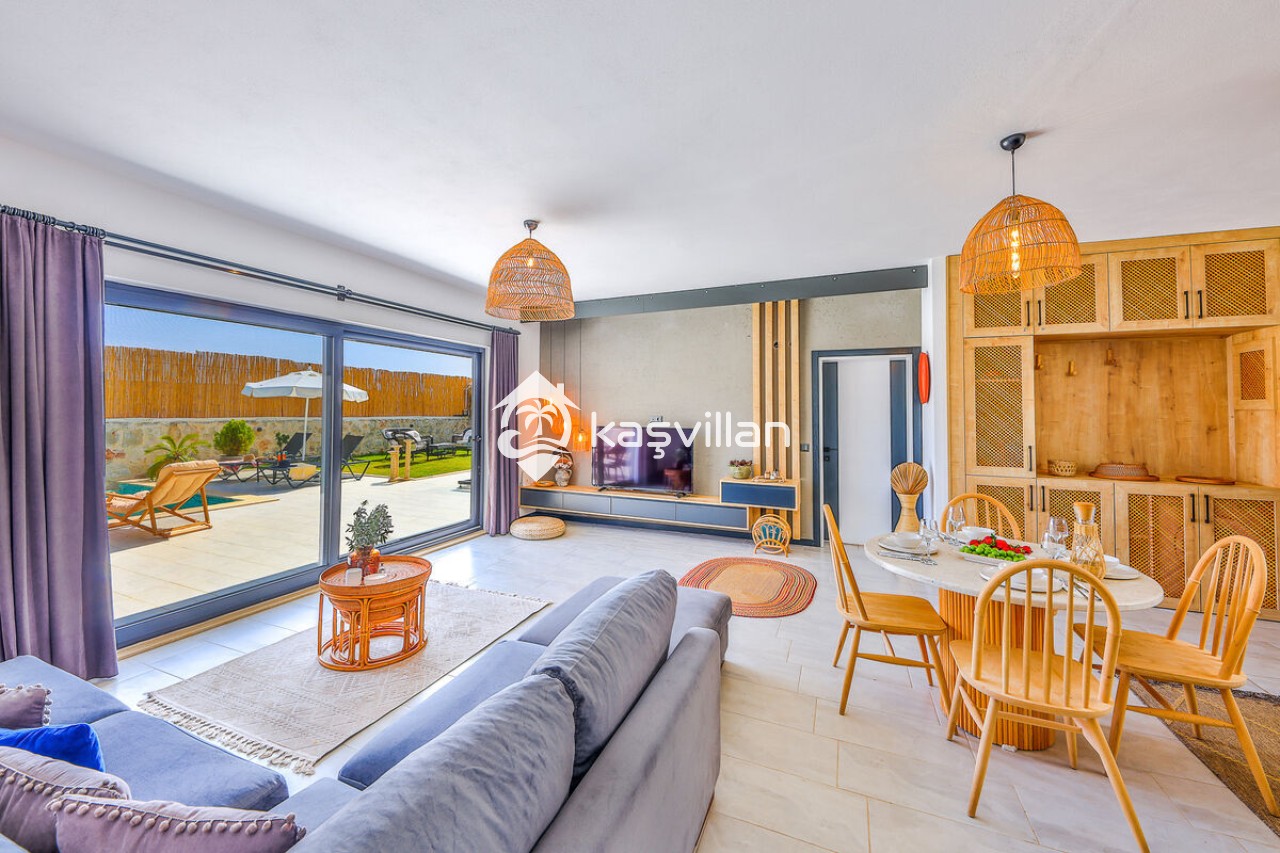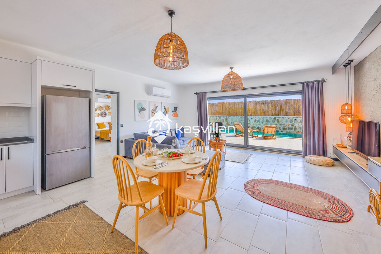 Salon: Oturma grubu Sehpa , TV ,Klima ve havuz terasına çıkış bulunmaktadır.