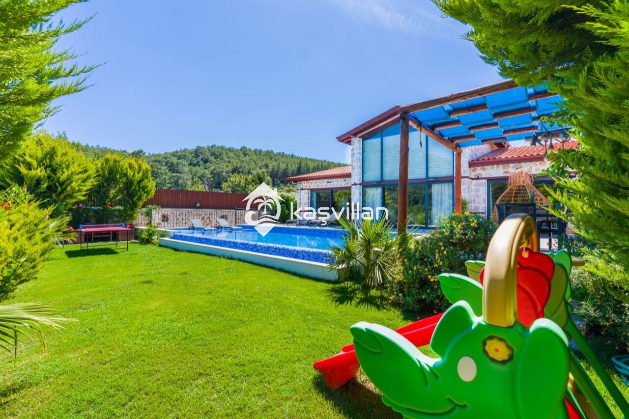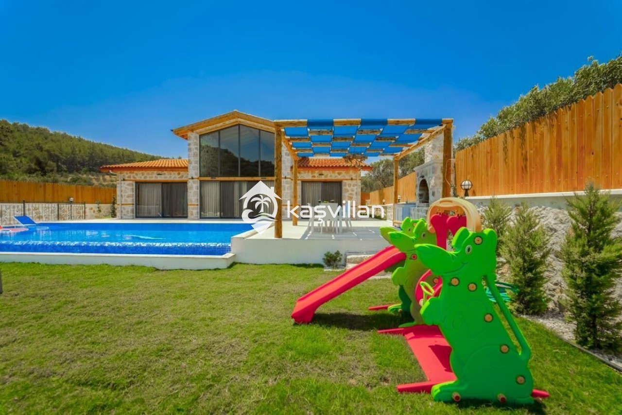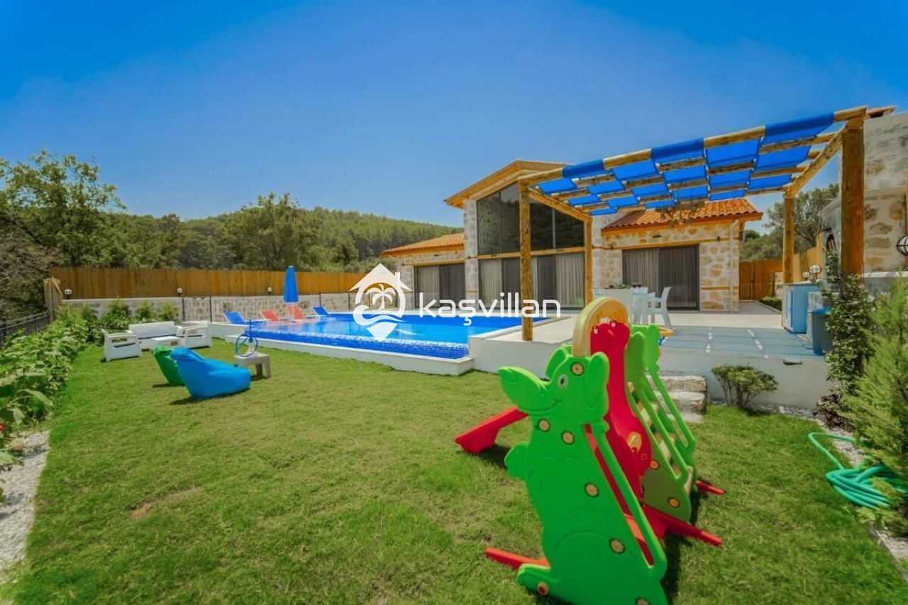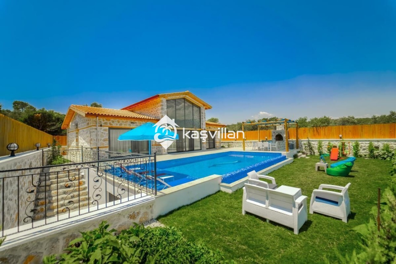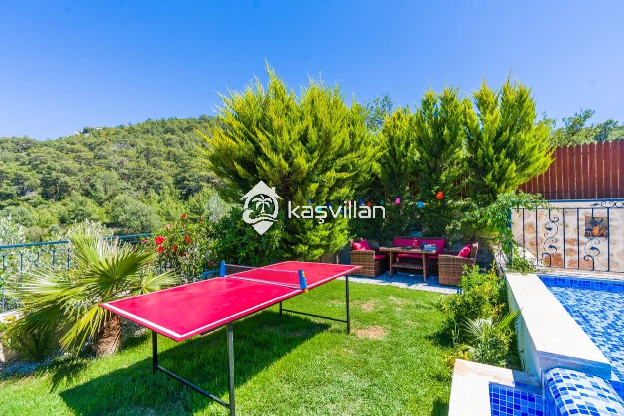 Villamızın özel yüzme havuzun muhafazakar olup dışardan kesinlikle görünmemektedir. şenzlong, şemsiye, yemek masası, barbekü bulunmaktadır. Ayrıca masa tenisi, ve salıncak bulunmaktadır.