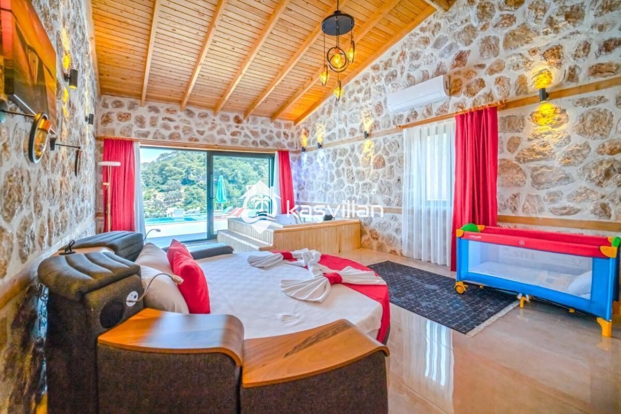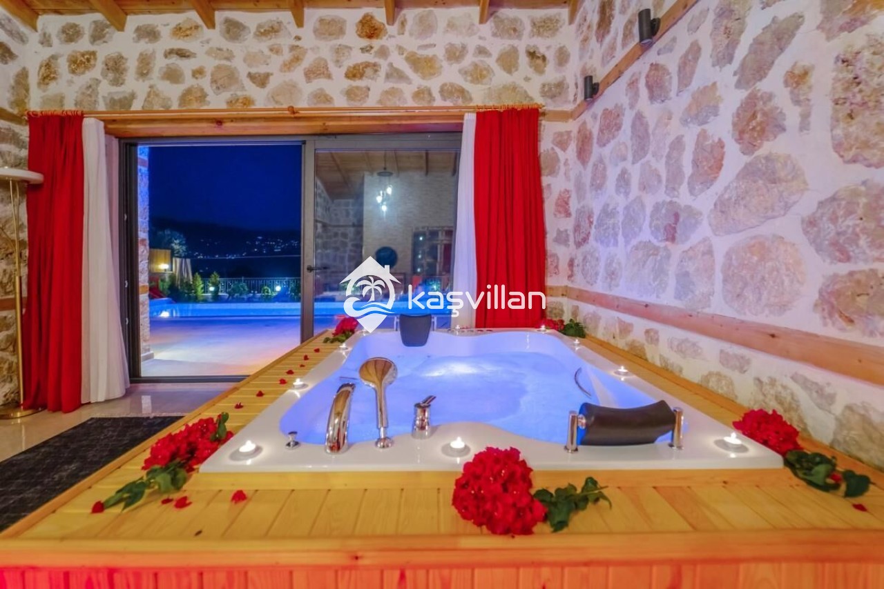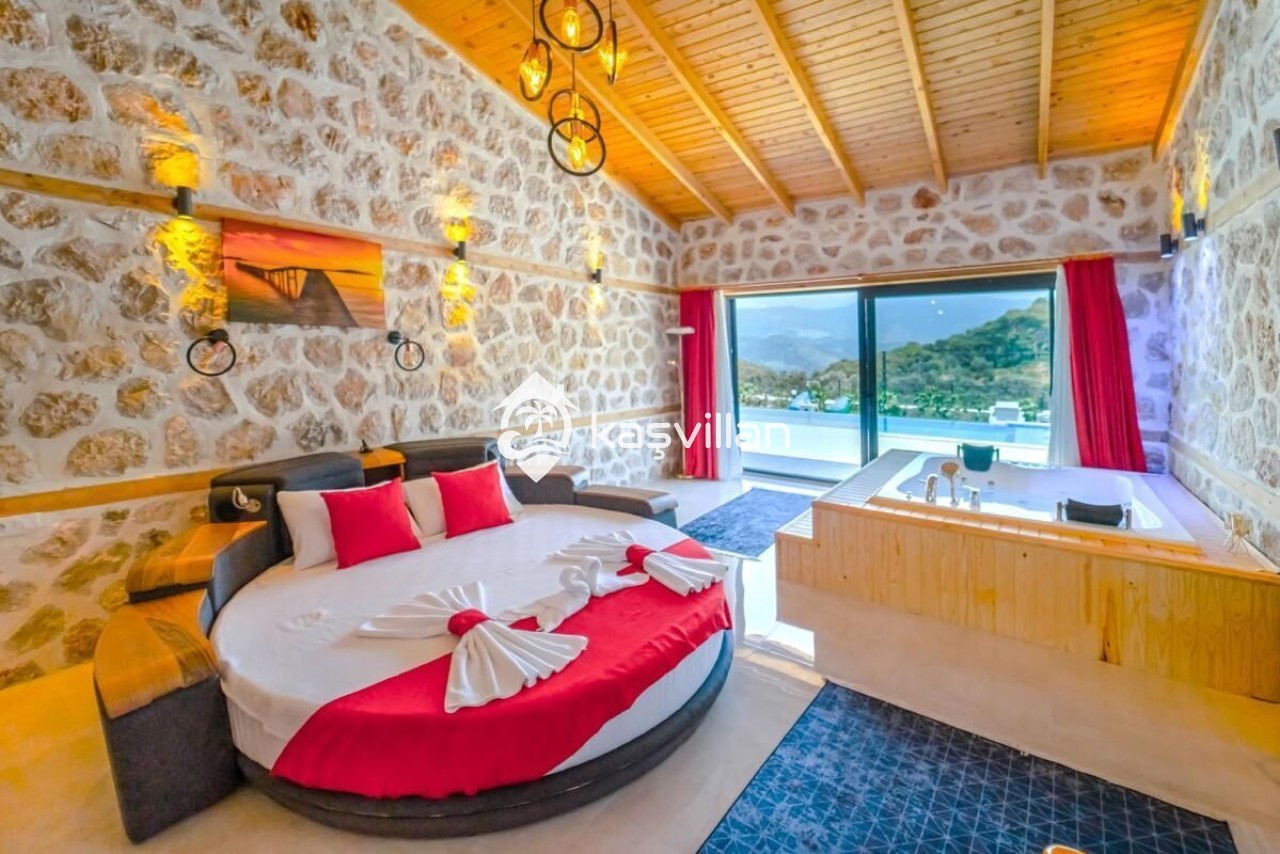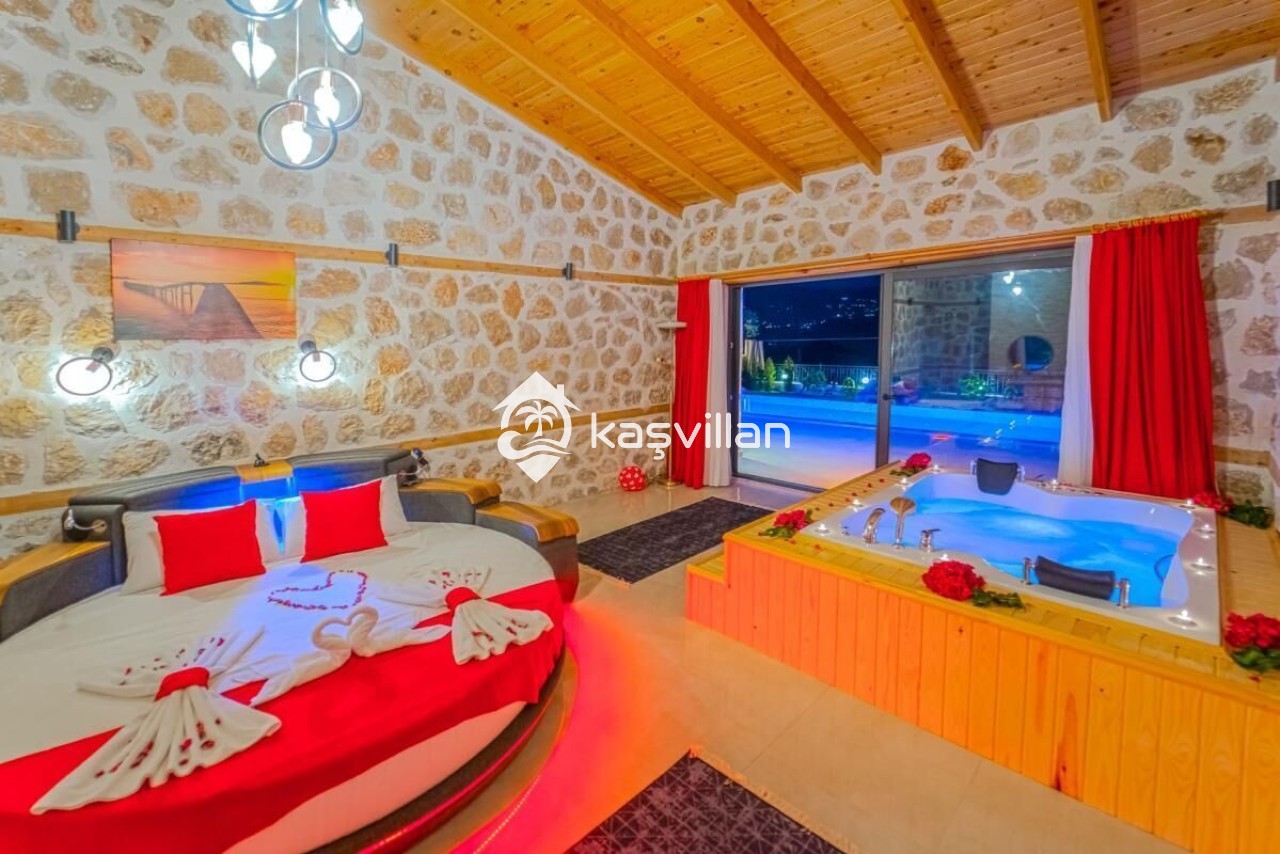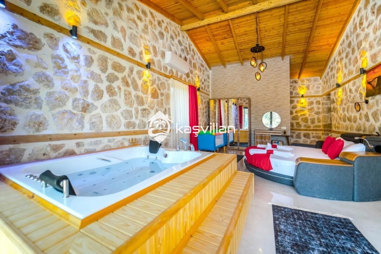Çift kişilik yatak, klima, komidin, makyaj masası, jakuzı, banyo ve lavabo bulunmaktadır.