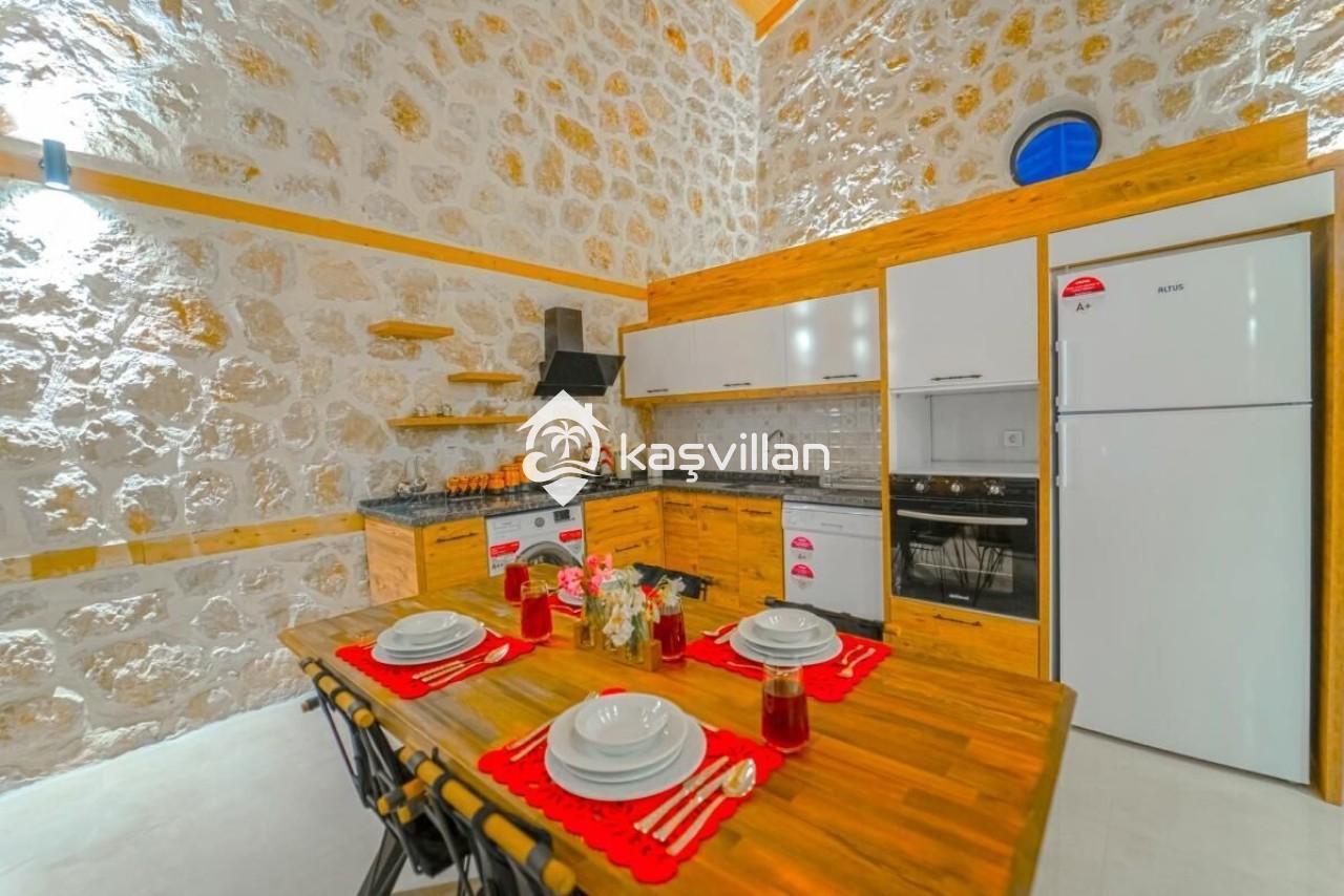 Villa Emir Patara Modern amerıkan mutfak 4 kısılık yemek takımı, buzdolabı, çamasır makınası, mıkrodalga fırın ,4 lü ocak, tost makinası, ketıl , çatal biçak takımı, tencere tava takımı, bulasık makınası bulunmaktadır.